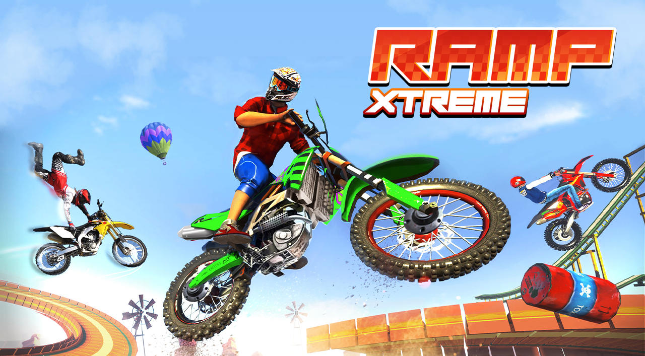 Ramp Xtreme challenges you to control the bike through dangerous tracks constructed from massive, rusted containers and narrow, fiery girders. Your journey is a high-stakes balance between speed and precision as you navigate steep inclines and massive gaps over the water. The aim is to maneuver through a series of obstacles and reach the destination to win. Every second counts, and one wrong move sends you splashing into the deep.