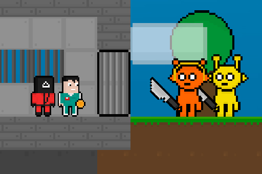 Sprunki 456 Squid Cookie takes you and a friend on a thrilling co-op journey. One player controls the Squid Game soldier, while the other moves as a Squid Game participant through a tricky, hazard-filled map. Both have to move together, avoid traps, and collect special cookies and objects scattered along the route. The Sprunki rival holds a sharp knife, swinging left and right across the map, forcing you to stay alert and time every move. You aim to tackle hazards and reach the destination to win the game. Your journey ends when either player crashes into an obstacle.