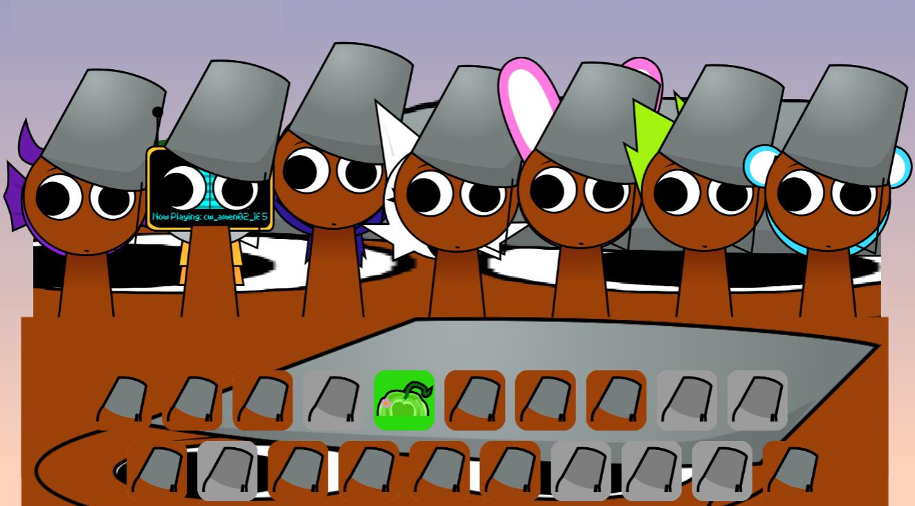In this unique phase, the spotlight shines on Brud, a fan-favorite character known for his distinctive brown look and the iconic silver bucket. The Brud Virus has swept through the Sprunki world, transforming every single performer into a version of Brud himself. Despite this overwhelming commonality, each character still clings to a few unique features that set them apart from the rest of the pack. Besides, these infected figures haven't lost their voices—they each possess unique sounds, allowing you to layer a wide variety of tones.